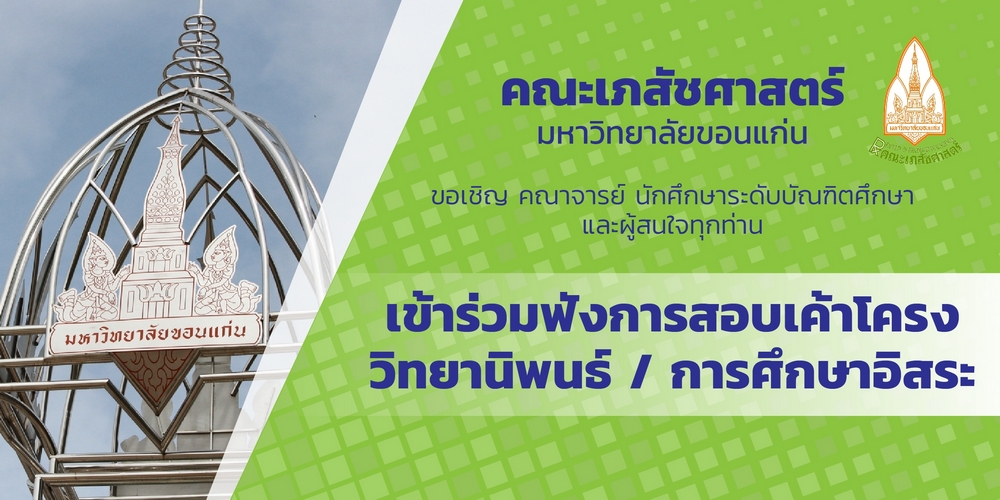 ขอเชิญ คณาจารย์ นักศึกษาระดับบัณฑิตศึกษาและผู้สนใจร่วมฟังการสอบวิทยานิพนธ์ / การศึกษาอิสระ
