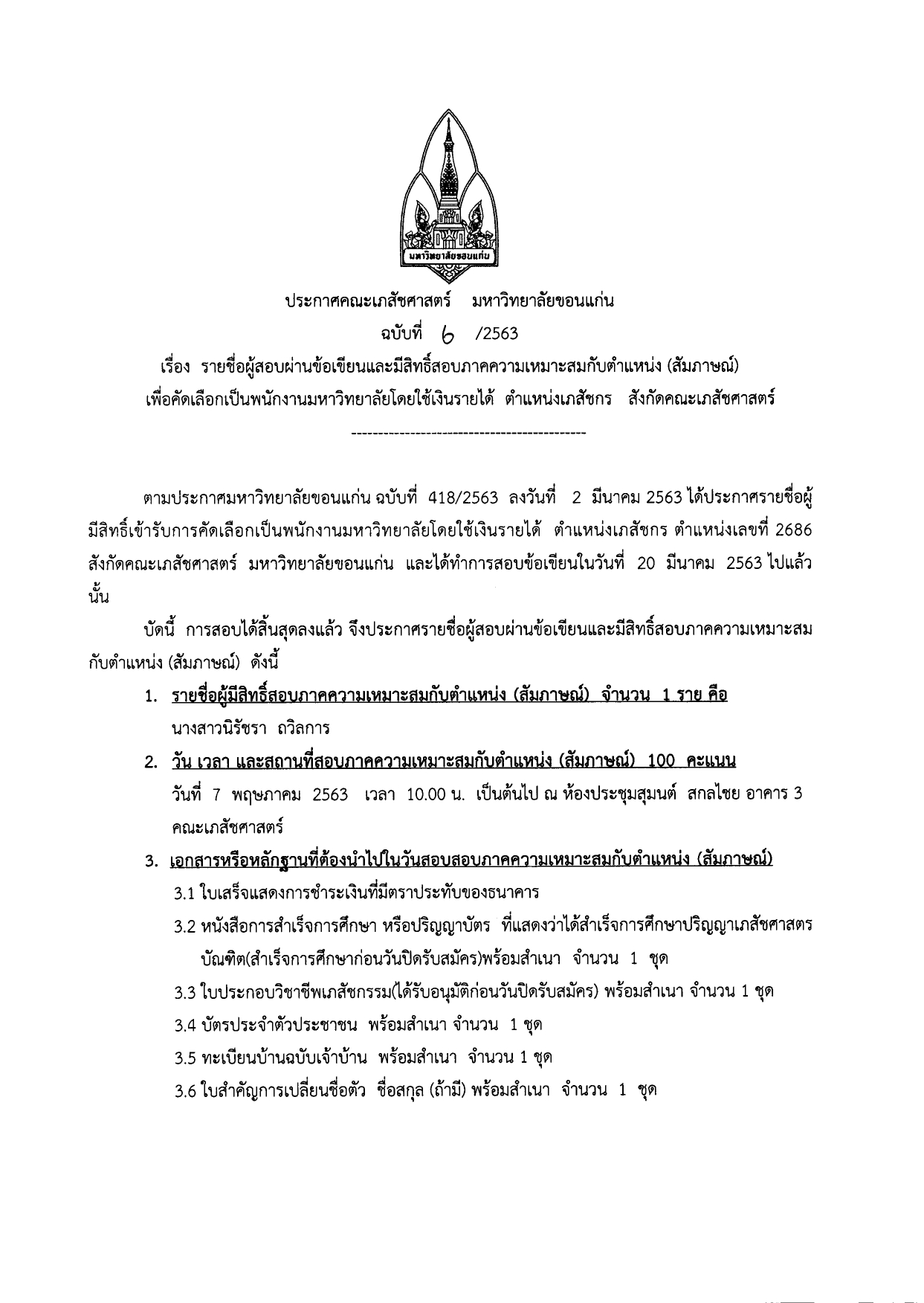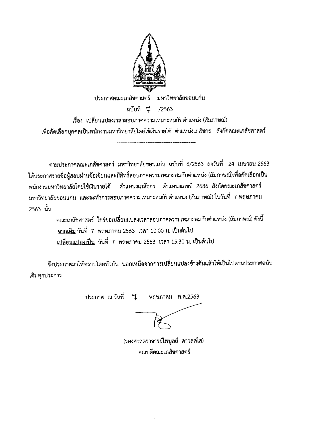 เปลี่ยนแปลงเวลาสอบสัมภาษณ์ ตำแหน่ง เภสัชกร