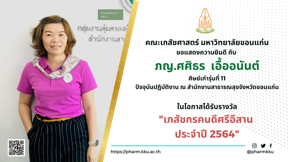 ขอแสดงความยินดี อาจารย์กับศิษย์เก่าคณะเภสัชศาสตร์ ที่ได้รับรางวัล "เภสัชกรคนดีศรีอีสาน"