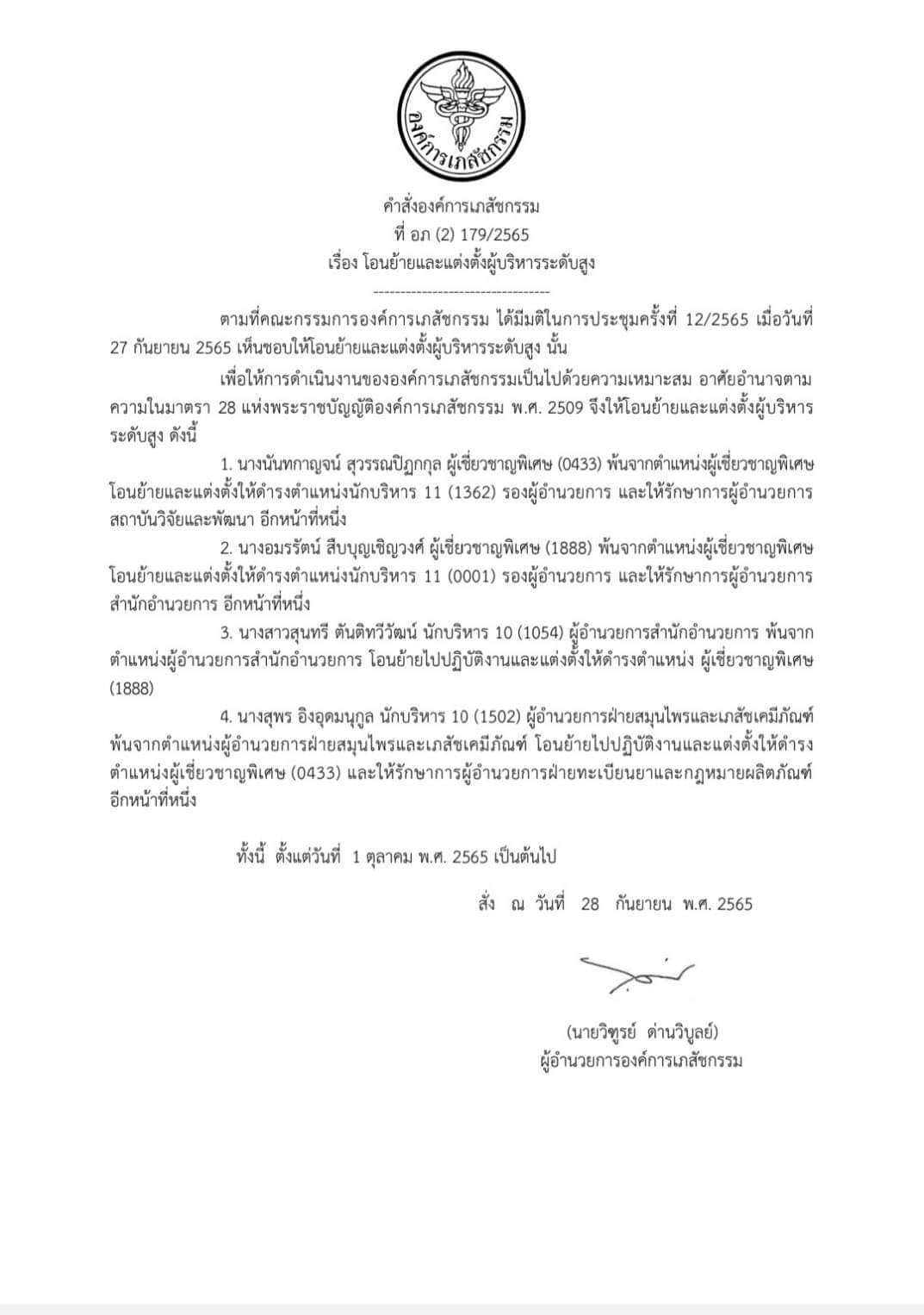 ศิษย์เก่าเภสัช ได้รับแต่งตั้งผู้บริหารระดับสูงองค์การเภสัชกรรม นักบริหาร 11 รองผู้อำนวยการและรักษาการผู้อำนวยการ สถาบันวิจัยและพัฒนา