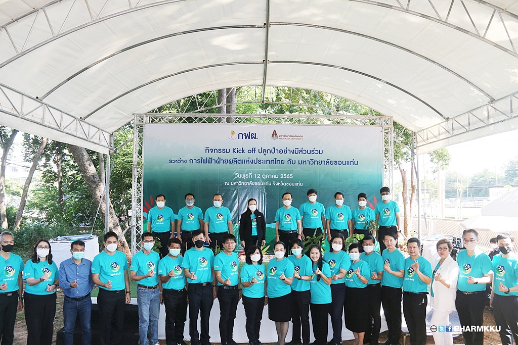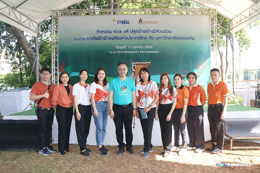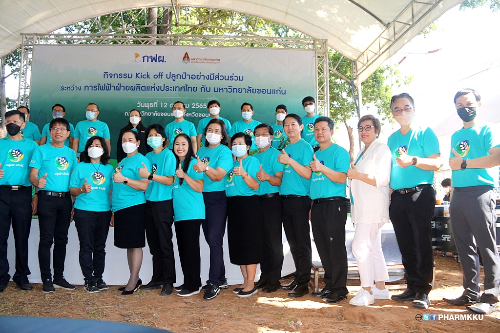 12 ตุลาคม 2565 ผศ.ดร.นรินทร์ จันทร์ศรี คณบดีคณะเภสัชศาสตร์ พร้อมด้วย นางสาวจีระวัฒน์ หาญเวช รักษาการแทนผู้อำนวยการกองบริหารงานคณะ คณะเภสัชศาสตร์ และบุคลากร ร่วมกิจกรรม Kick Off ปลูกป่าอย่างมีส่วนร่วม จากการร่วมมือระหว่าง มหาวิทยาลัยขอนแก่น (มข.) กับ การไฟฟ้าฝ่ายผลิตแห่งประเทศไทย (กฟผ.) ในการส่งเสริมและฟื้นฟูความอุดมสมบูรณ์ของระบบนิเวศ การลดก๊าซเรือนกระจก และเพิ่มศักยภาพการกักเก็บก๊าซคาร์บอนไดออกไซต์ด้วยการสร้างการมีส่วนร่วมของชุมชนในการปลูกและบริหารจัดการป่าอย่างยั่งยืน รวมถึงการยกระดับคุณภาพชีวิตด้านเศรษฐกิจและชุมชน ด้วยเทคโนโลยีด้านการเกษตรและป่าไม้ ณ บริเวณริมรั้วมหาวิทยาลัยขอนแก่น ฝั่งถนนมิตรภาพ (ข้างศาลเจ้าพ่อมอดินแดง)