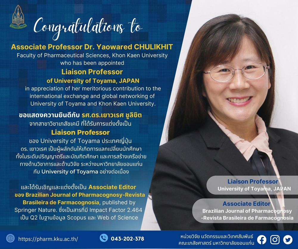 คณะเภสัช มข. ขอแสดงความยินดี กับ รศ.ดร.เยาวเรศ ชูลิขิต